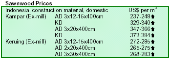 Sawnwood prices hold onto recent gains