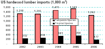 was an estimated 21.3%. The total value of US hardwood lumber imports stood at $567 million in 2006.