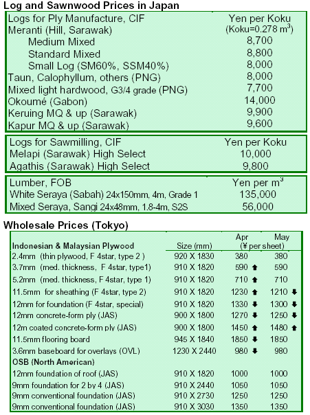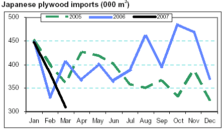 In March 2007, Japanese markets experienced a 1.5% increase in supply of domestic made plywood from March