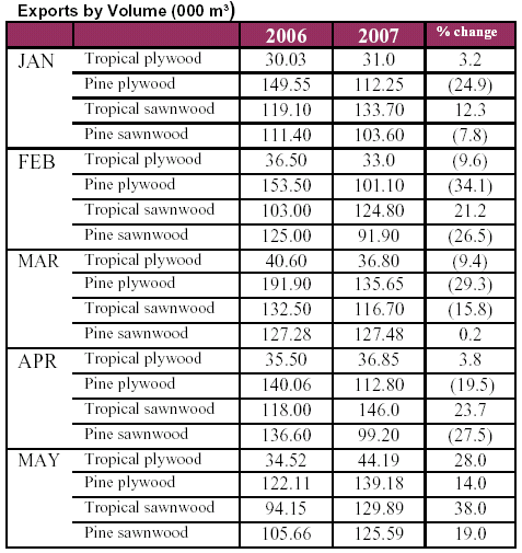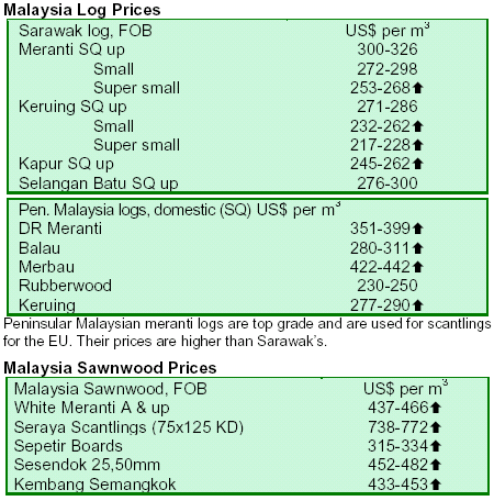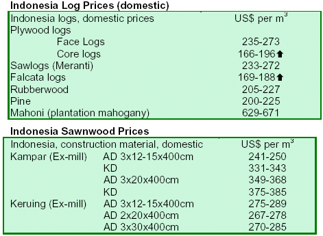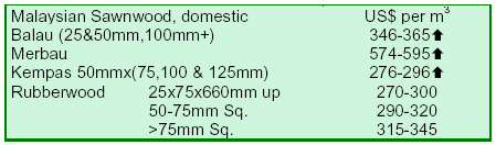 line with the increased use of timber in the local construction industry. Prices of plywood, however,