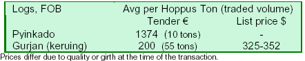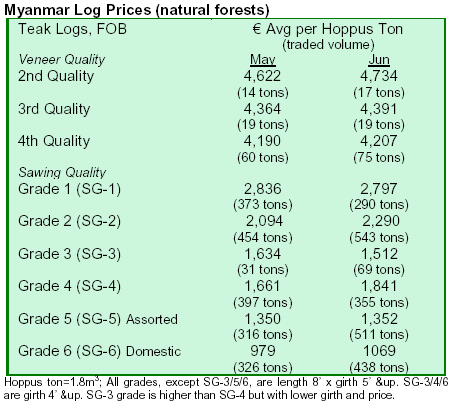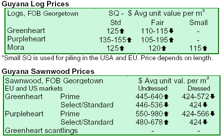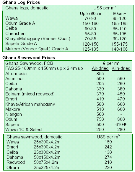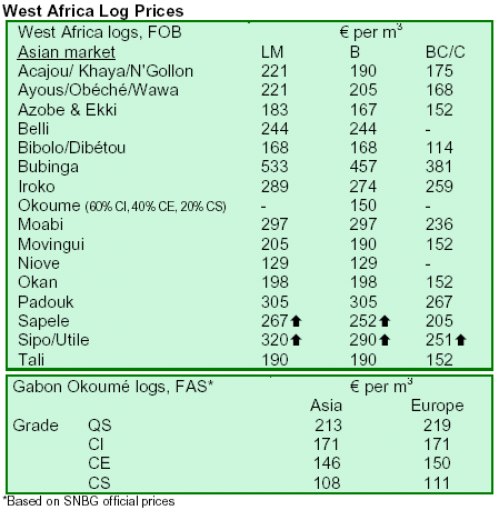 Sipo and sapele logs were in demand for all markets and prices for these species were higher. For