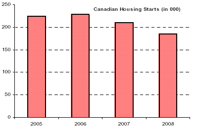 The reduction in North American housing starts resulted in a much lower demand for lumber.