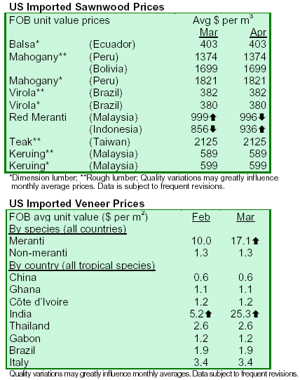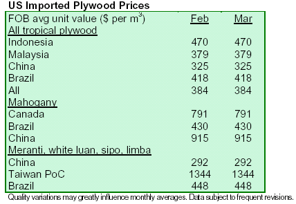 According to Random Lengths International, U.S. imports of Brazilian plywood fell 75% from the previous year.