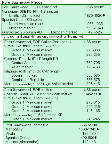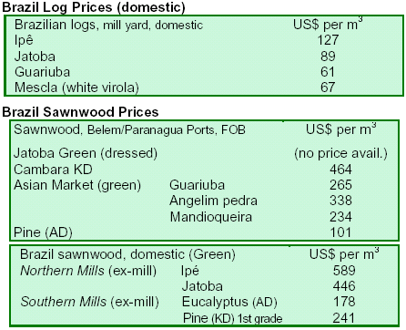 marginally. Prices of sawn timber were mixed even with steady demands from China and the Middle East.