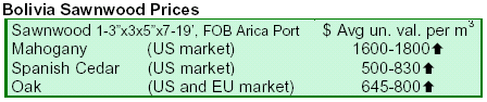 Bolivian wood exports reached US$55 million during the first quarter, 24% above the same period in 2006. The US