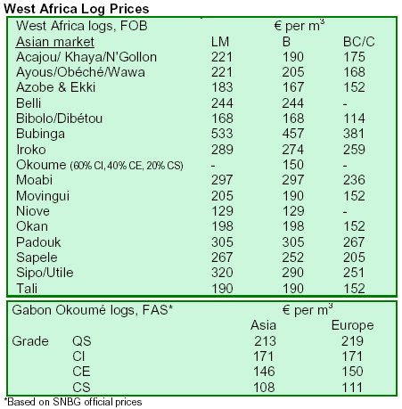 and Congo Brazzaville have assisted greatly in keeping log prices relatively stable over the last few