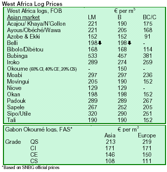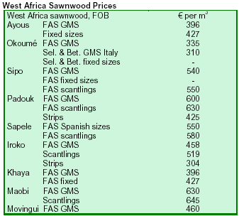 15 ¡§C EUR20 per m3. Sapele and Sipo hold on to June price