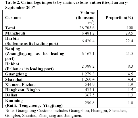 During January to September 2007, ports in coastal cities and on Chinese-Russia border were