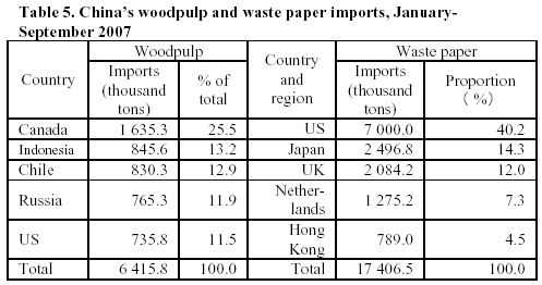 China¡¯s paper pulp imports were mainly from Canada, Indonesia, Chile, Russia and the US.