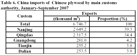 plywood were Nanjing,Qingdao, Guangdong etc. (see Table 6).