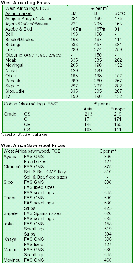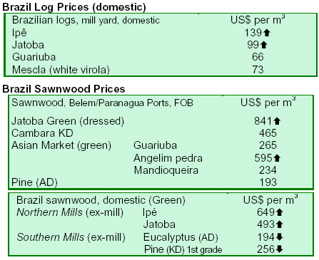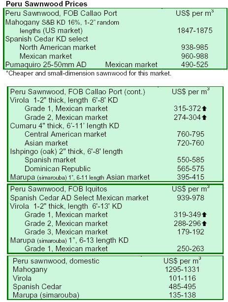 marupa and Spanish cedar rose slightly in 2007. Semimanufactured