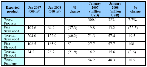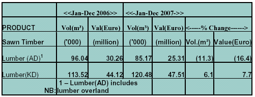 51.69% of the sector. Sawnwood exports for 2007 were