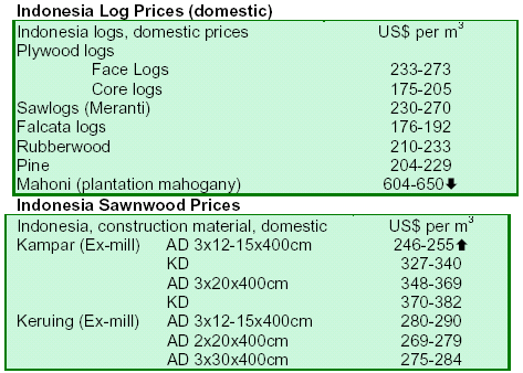 Prices for logs, sawnwood and plywood remain relatively