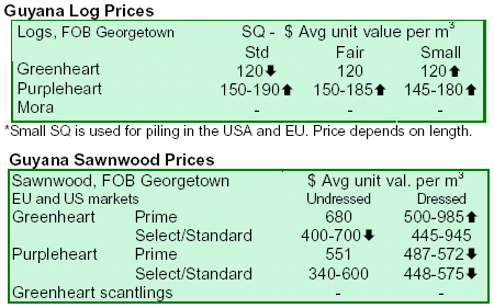 stable. Prices for purpleheart logs rose 10 percent over the