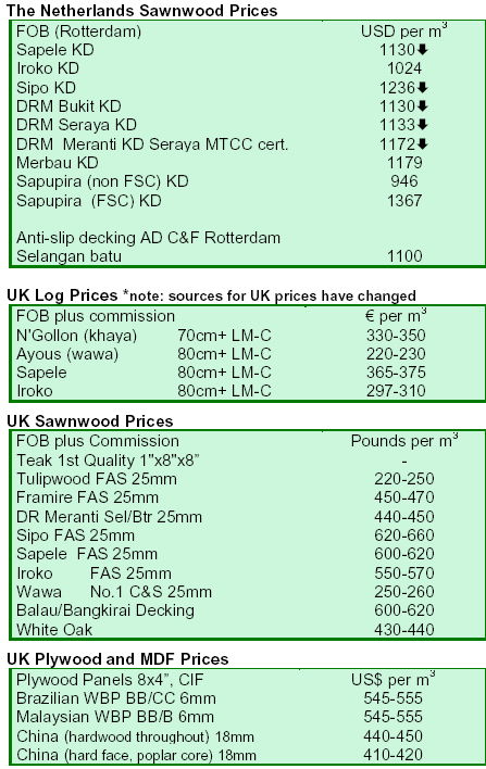 price decreases for sapele and sipo since the start of the