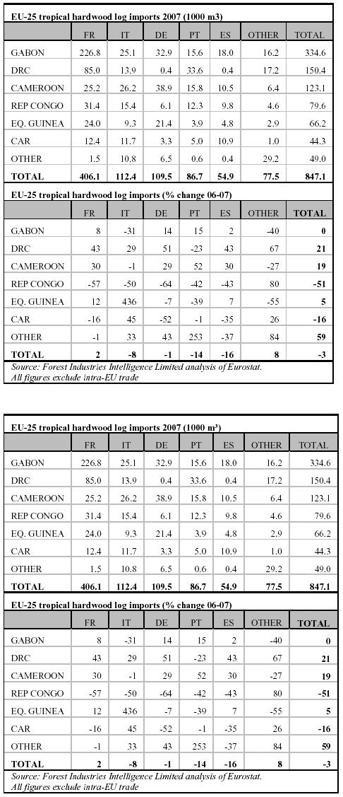 the EU during 2007 were Gabon (334,600 m3,