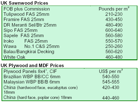 Imports of hardwood plywood fell slightly to the UK