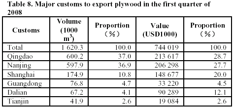 A total of 1.62 million m3 of plywood was exported at first