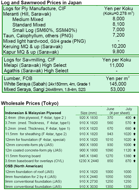 Japan Wood Products Prices