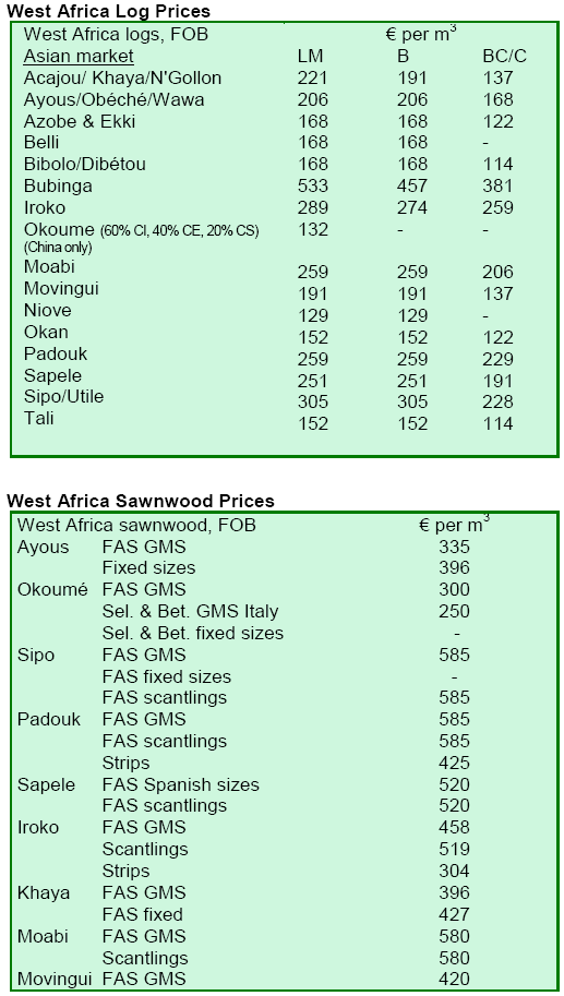 West African log trade remained very slow and selective,