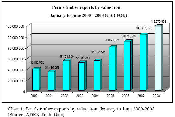 2007 to 41 m³ 2008, with export revenue from the product