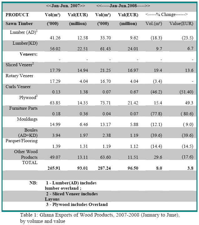 Ghana exported 287,224 m³ of wood products for the