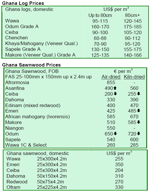 orders. Sapele prices were weak and very variable with