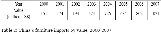 total value of China¡¯s furniture market. Table 2 below