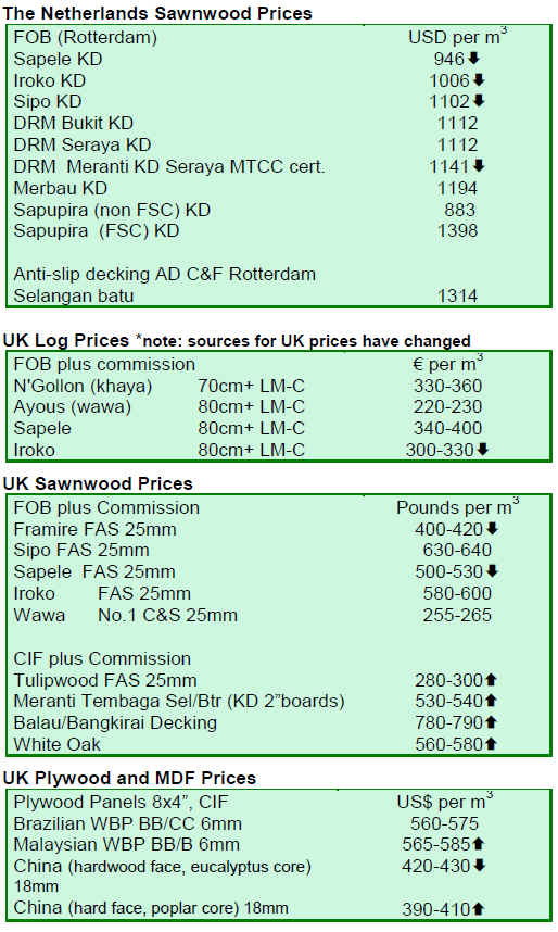 FOB prices for sapele quoted to UK importers have